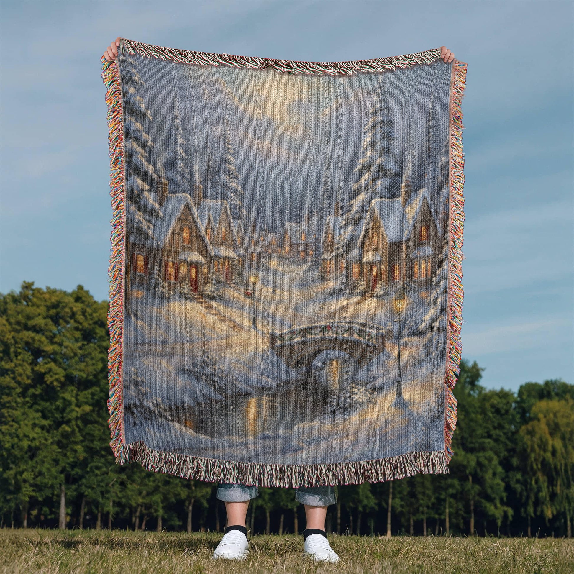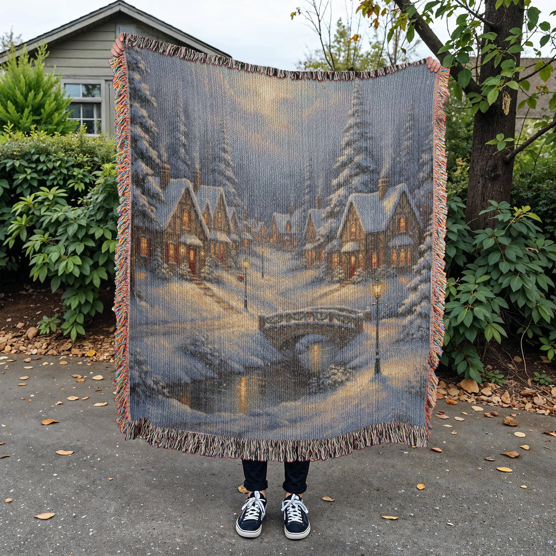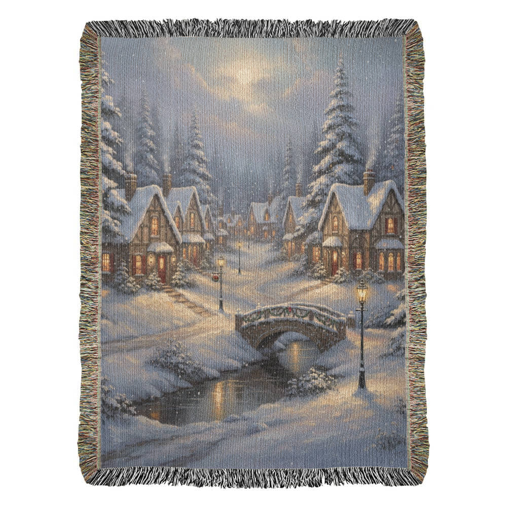 Handwoven Heirloom Blanket - Old Village Artwork Cotton Throw