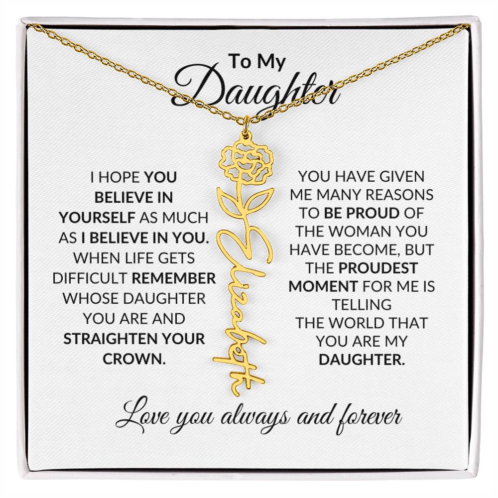 To My Daughter | Believe in Yourself | Personalized Flower Name Necklace